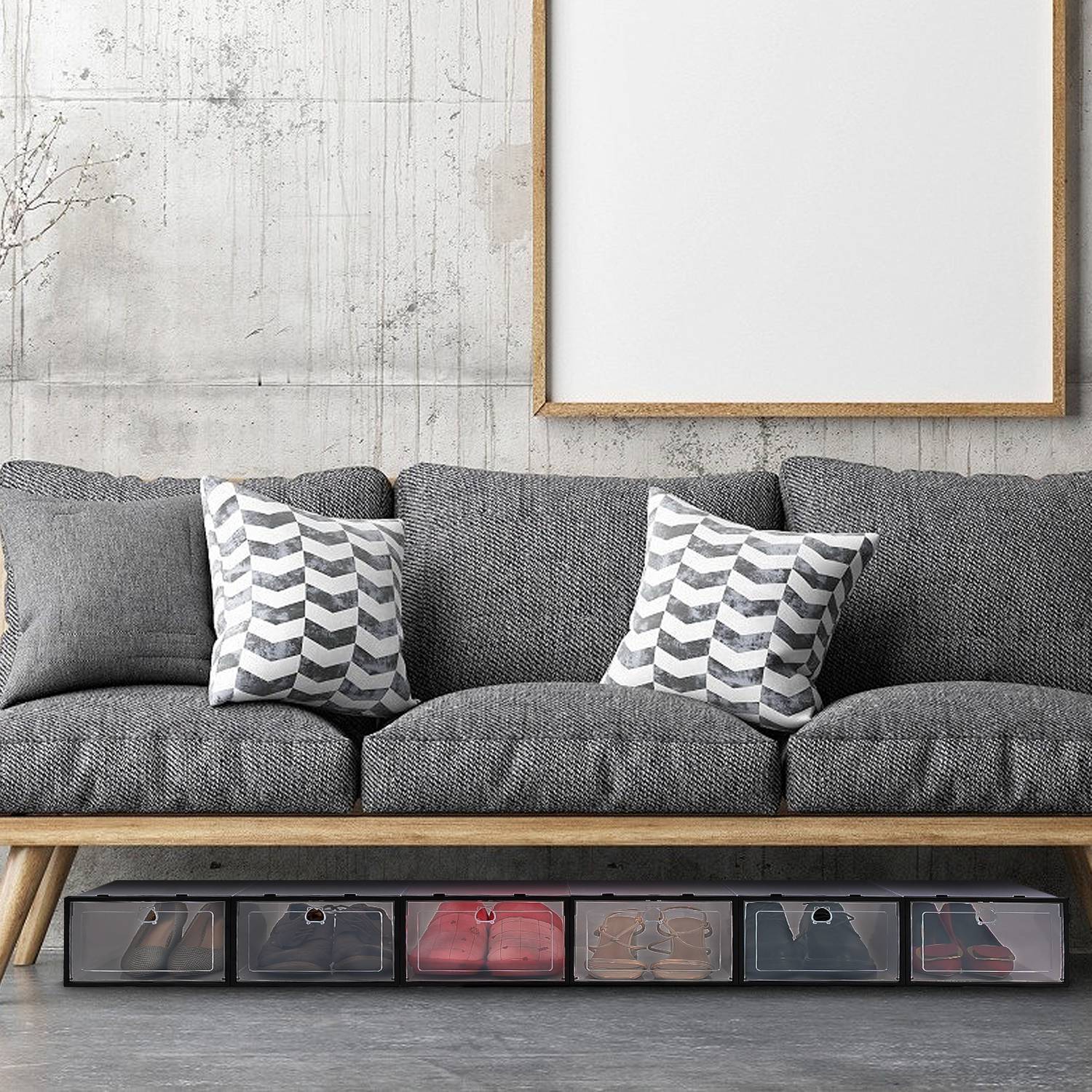 6-Pack Stackable & Collapsible PP Plastic Shoe Storage Bins
